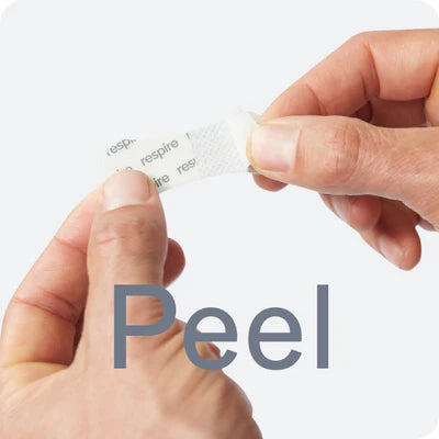 Start by making sure your nose is clean and dry. Peel off a Respire Nose Strip from the sheet and position it across the bridge of your nose, following the natural contours down to your nostrils.
